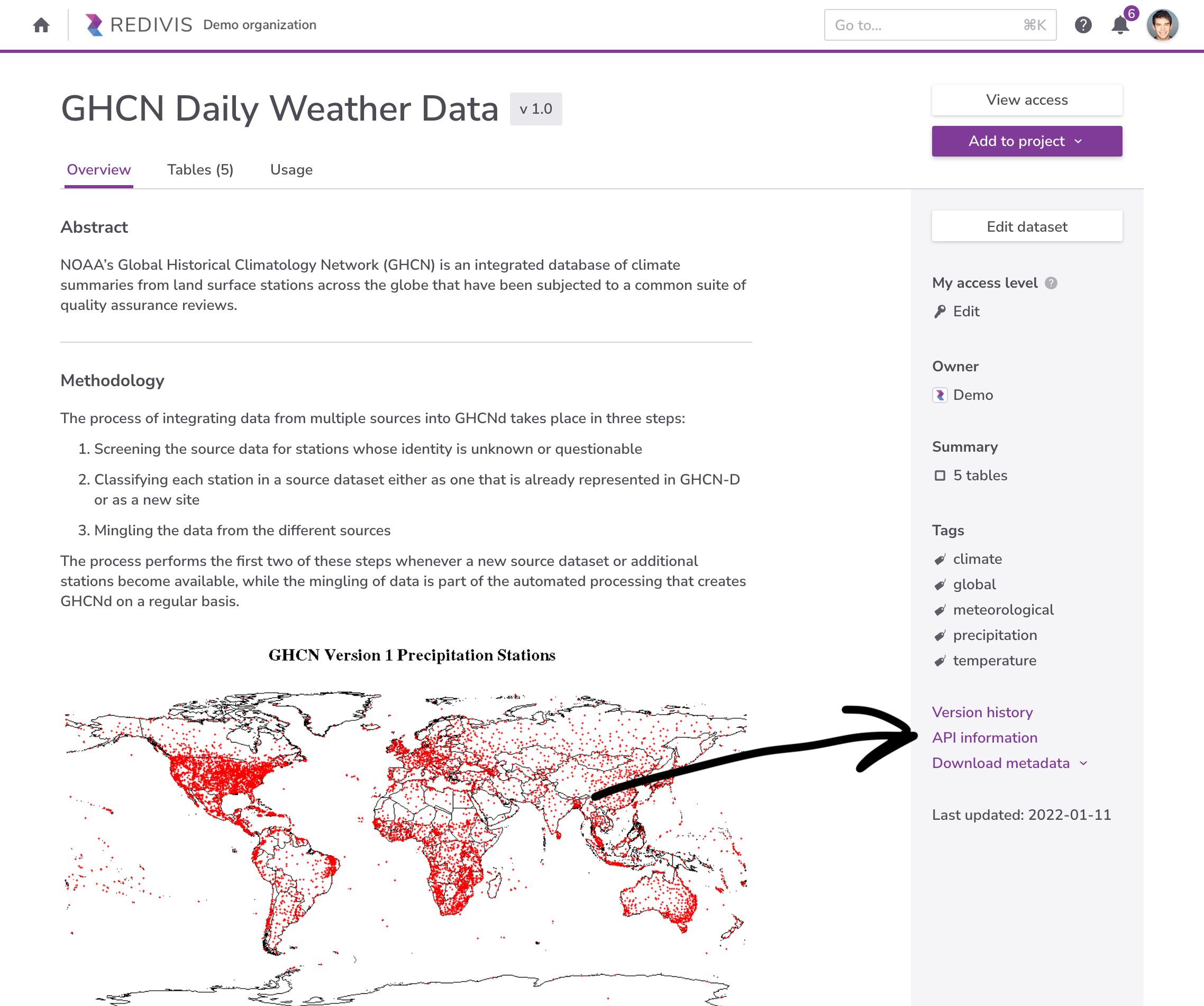 You can also find dataset-specific information by clicking on API Information link on the dataset overview page:
