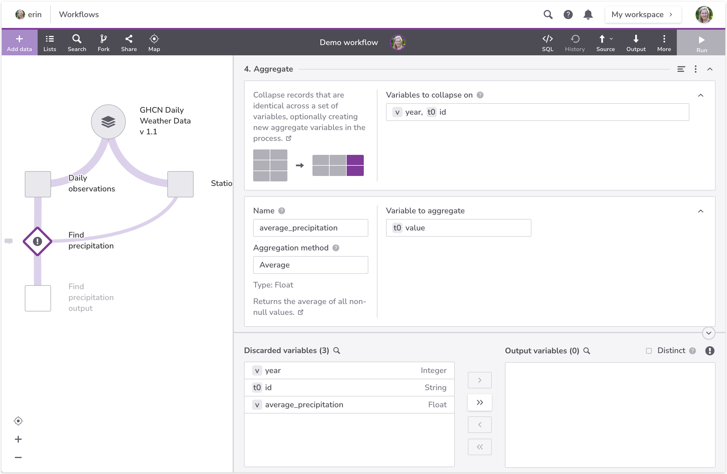 *Learn more in the* [*Aggegate*](https://docs.redivis.com/reference/workflows/transforms/step-aggregate) *reference section.*